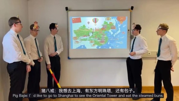 京游记小组将中国四大名著中的西游记故事搬到了2022年北京冬奥会的场景中来,创意有趣的故事编排和学生们生动的中文对话演绎,令观众们看得津津有味。