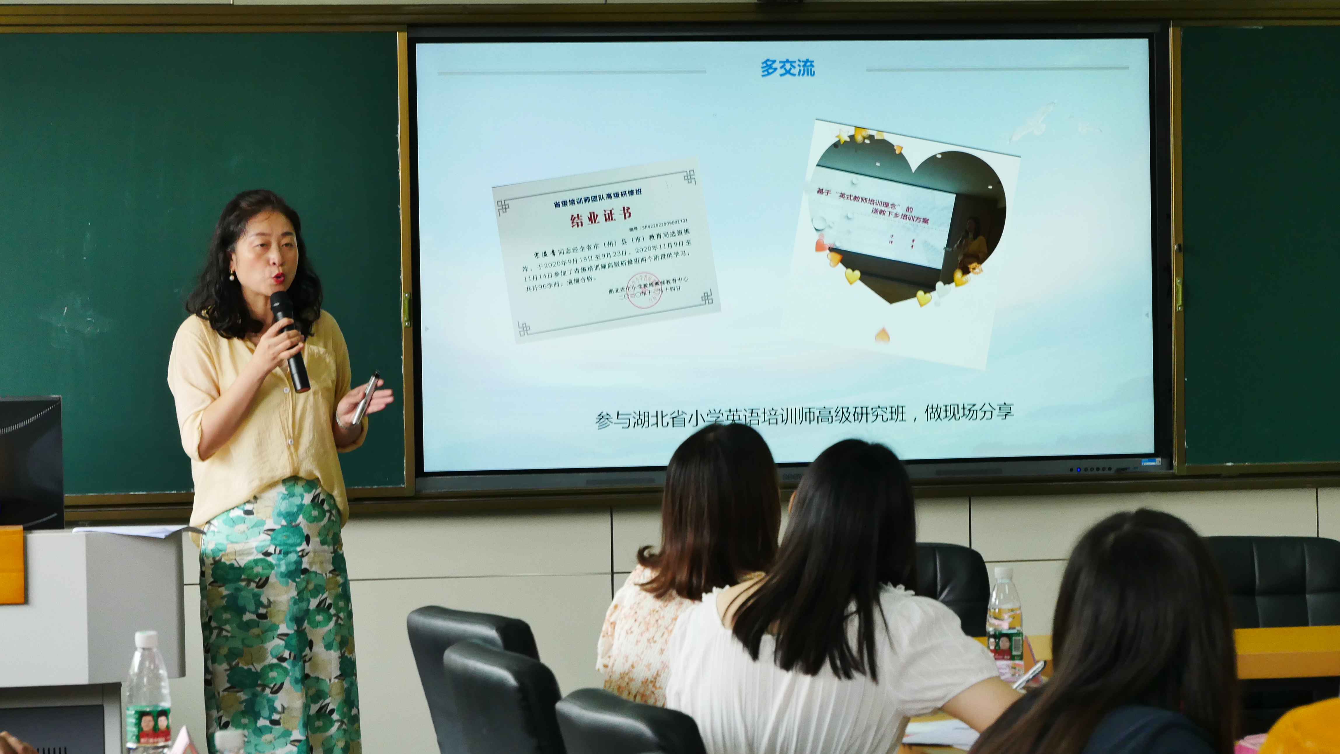 研讨会的第三个部分是黄石十四中胡智全初中英语名师工作室和黄石中山小学宋溢青小学英语名师工作室进行建设经验分享。两个学校的名师团队从工作室取得的成绩入手,详细分享了工作室成立前、中、后遇到的具体问题以及如何攻坚克难、打造优秀团队的过程。