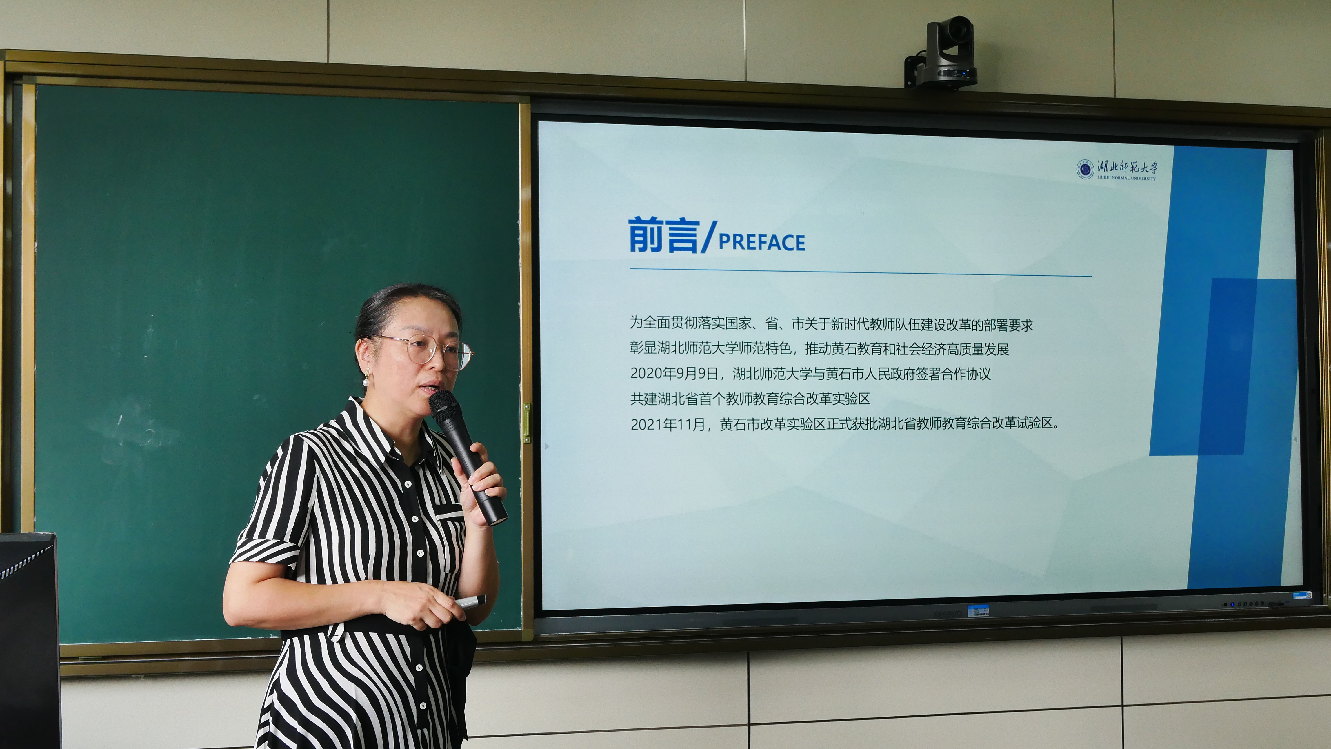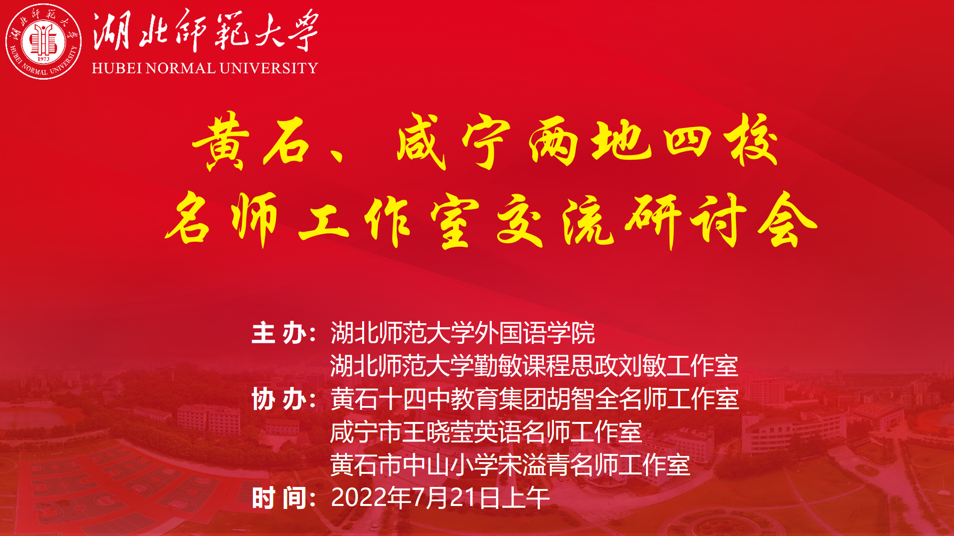 本网讯 721日上午,为深化高校与中小学合作共赢的“三位一体”协同培养机制,打造教师培养、培训、研究和服务一体化的合作共同体,实现高校名师工作室与基础教育中小学名师工作室的对接协作与深度交流,外国语学院在充分发挥国家级课程思政教学名师团队刘敏工作室“走出去”省内省外辐射示范作用的同时,将黄石、咸宁两地中小学英语名师工作室“请进来”,于人文楼21B602圆满举办“黄石、咸宁两地四校名师工作室交流研讨会”,旨在促进黄石、咸宁两地英语教育教学相互交流和同步发展,加强各名师工作室之间的合作学习与智慧共享。