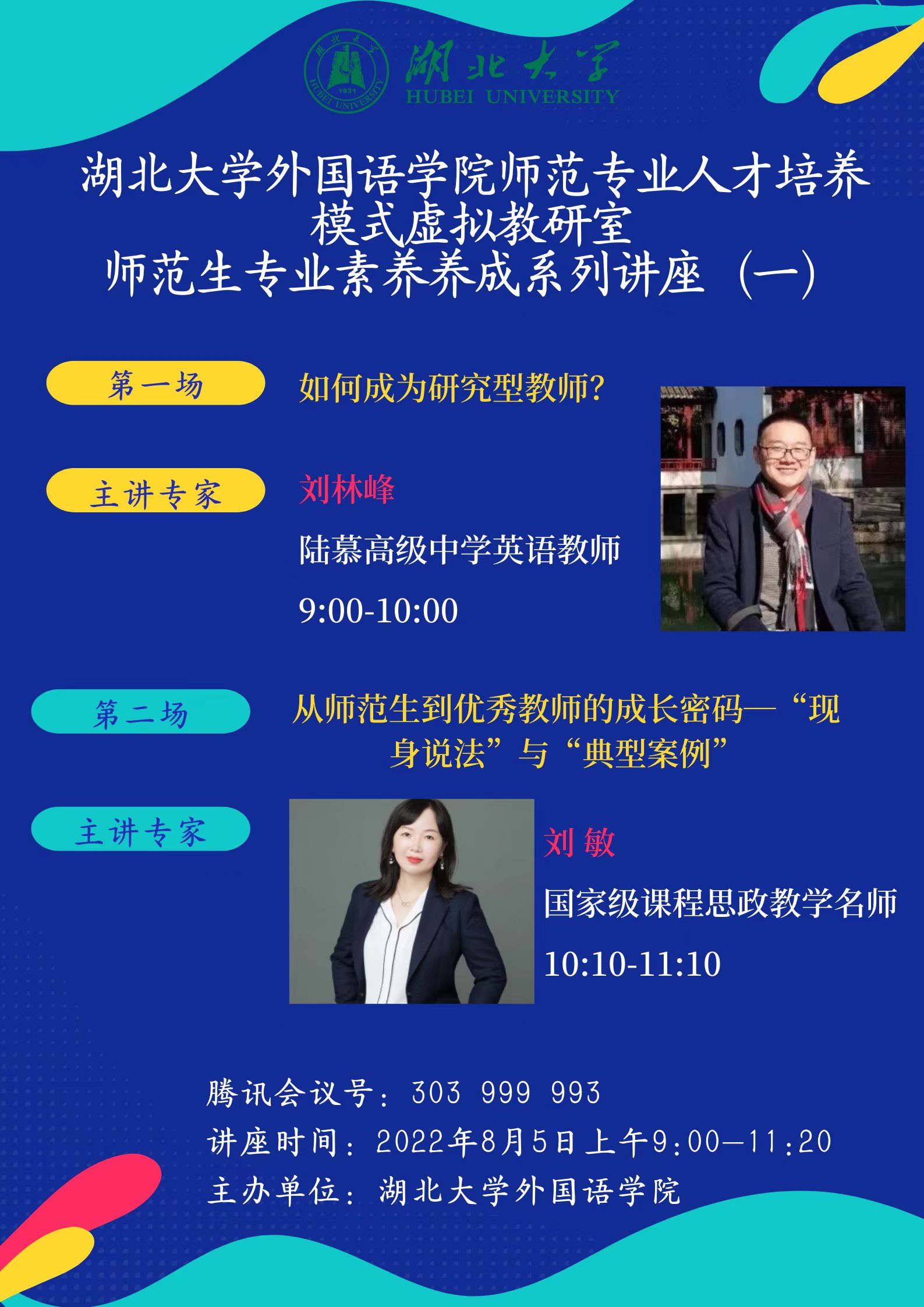 7月1日,主持人刘敏为黔鄂两省三校外国语学院师生做《如何做一名优秀的新时代外语人》暑期专题讲学。7月18日,举办一流师范生智慧大讲堂(第4期)“论文撰写与投稿发表科研素养提升论坛”。 8月5日,工作室主持人刘敏、主要成员刘林峰受邀为湖北大学外国语学院师生做了两场师范生专业素养养成系列讲座,讲座题目分别为:(1)从师范生到优秀教师的成长密码——“现身说法”与“典型案例”(2)如何成为研究型教师?与会参与学习交流的还有365上市公司官网外国语学院、湖北师范大学文理学院部分老师和本科生及研究生。会后,湖北大学外国语学院发来了感谢信,对工作室两位老师的倾囊相授和热情分享表示衷心感谢。7月至8月,指导师范生教师技能大赛、微课大赛评课磨课备赛,暑期每周在线针对本科生、研究生生活或学习中的问题进行及时答疑解惑。