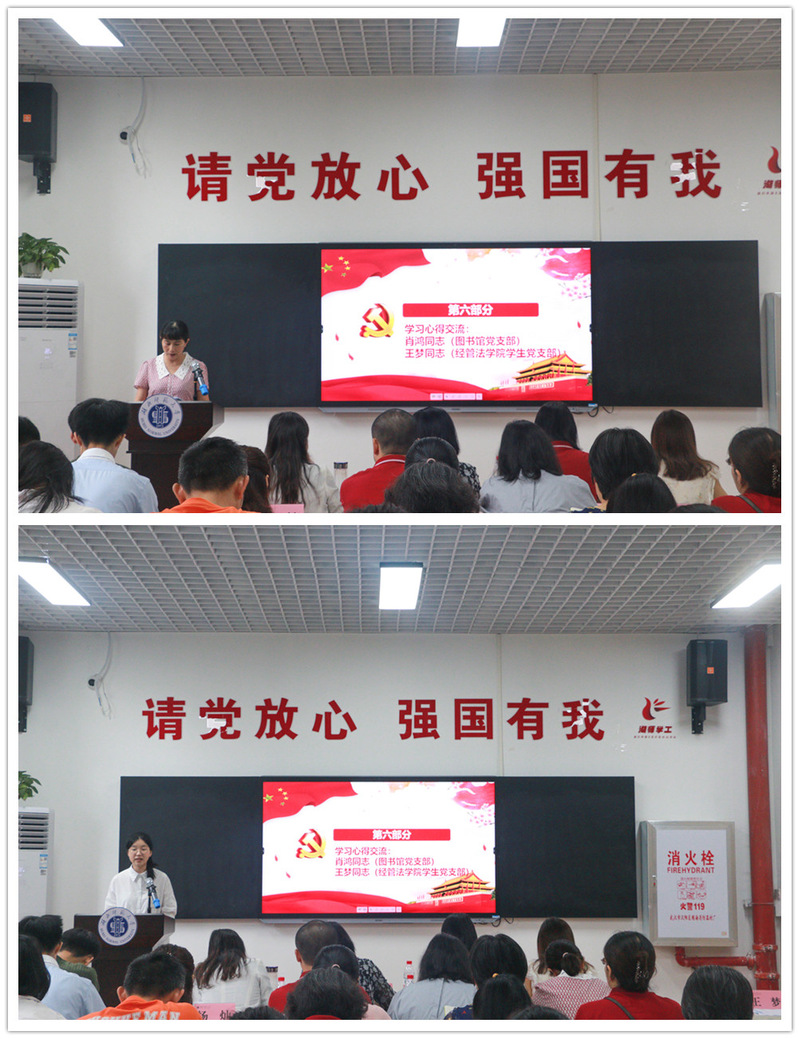 图书馆党支部肖鸿同志结合自身工作实际交流学习感悟和心得,他说道“今后要进一步学理论、提素质、学业务、强本领,以新形象新风貌为广大师生服务,以新气象新作为推动学校各项事业发展”。经管法学院学生党支部王梦同志号召广大青年党员,要从主题教育学习中激发信仰、获得启发、汲取力量,怀抱梦想又脚踏实地,敢想敢为又善作善成,立志做有理想、敢担当、能吃苦、肯奋斗的新时代好青年。
