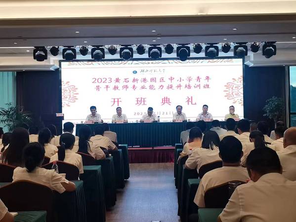 本网讯 7月21日下午,2023黄石新港园区中小学青年骨干教师专业能力提升培训班在湖北师范大学师培基地顺利开班。教师教育学院院长陈强、副院长杨冬伟、姚菁、胡天佑,新港园区社发局党委书记、局长费国锋,分管教育负责人李火颂、工会主席刘许出席了开班典礼。典礼由副院长杨冬伟主持。