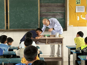 上午9时举行捐赠仪式,广州视睿电子科技有限公司、九三学社黄石委员会向阳新县浮屠中心小学捐赠30台电脑。捐赠仪式结束后,湖北师范大学九三学社社员们为在校师生们开展专题培训。洪新发教授以《艺术实践写生》为题面向浮屠镇中心小学教师开展了艺术鉴赏能力的专题培训,教师们受益匪浅;屈小妹、樊超杰和胡校兵分别以《数字与生活》《科普展演小实验》和《光刻的秘密》为题面向浮屠镇中心小学学生开展了科普教育专题培训,邀请学生参与其中,激发他们的好奇心,受到学生们的热烈欢迎。