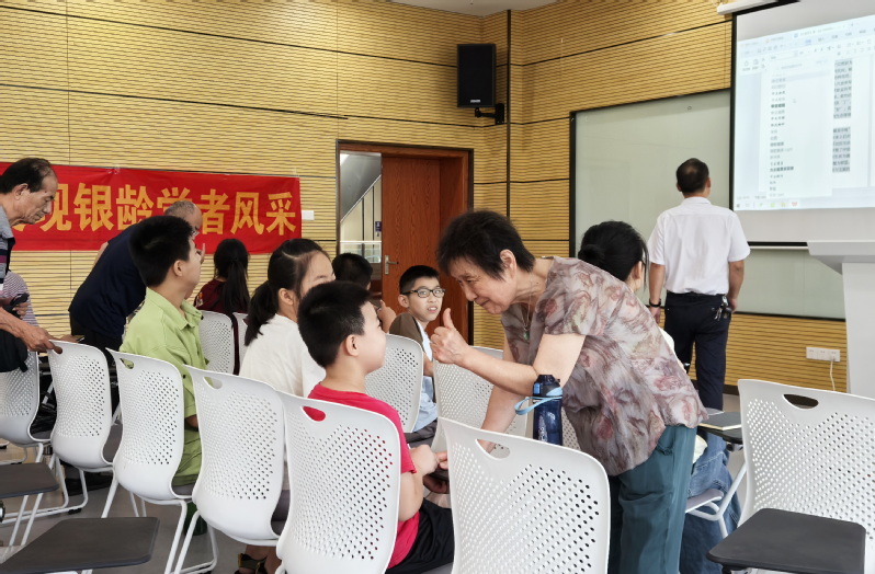 图为讲座现场浠水县的中小学生与老教授活动交流。