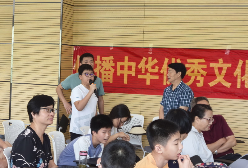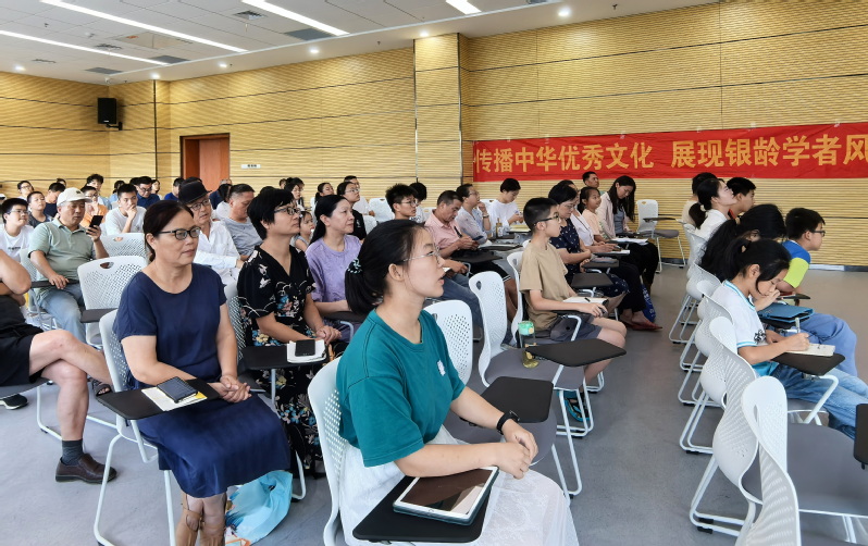 两天四场的文化讲座中,老教授们深入浅出的讲述和听众们的研讨互动,活跃了小小空间的文化氛围,听众们在领略了学者渊博的知识风采的同时,也感受到中国古典名著中蕴含的人生哲理和历史厚重感。来听讲座的,有中学生、本科生,还有研究生;有还乡教授、文学爱好者,也有当地文史专家。老老少少在现场分享着阅读中国古典名著的心得和收获,互动环节的热烈程度,不亚于在大学中文系给本科生作讲座。现场和爸爸一起来的小学生沈旺星说:“听了石教授的三国讲解,让我知道了有些故事是真实的,有些可能是作者艺术加工的,任何事情都需要自己去探索思考。”回乡过暑假的纺大研一学生李满学习方向是马克思主义专业,与吴瑞霞教授探讨起如何从唯物史观分析红楼梦的故事和人物。