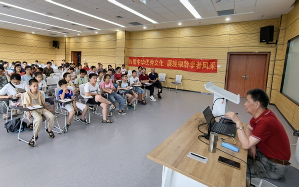 本网讯 暑热的三伏天,正是各地的歇夏时节,孩子们也进入暑假休学阶段。湖北师大离退休党委、离退处为发挥老教授老专家的知识优势、智慧优势,践行习近平文化思想,暑期启动“传播优秀中华文化展现银龄学者风采”文化下乡行动。8月1日-2日,石麟、吴瑞霞两位银龄教授,离退休全体班子成员一行冒着酷热来到浠水县十大乡村书院之一的兰溪书院暑期公益课堂开展中华优秀传统文化宣讲。中国优秀古典文化散发的馨香就像一缕缕清凉的微风,每天都吸引着近百位本地的大中小学生、市民和文化人士前来聆听交流。