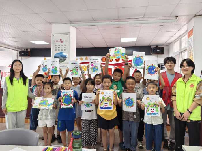 在“共绘美好未来——世界地球日”课堂中,队员向孩子们讲述世界地球日的源起与深意,科普守护地球的重要性和方法,教导孩子们将绿色生活的种子播撒在生活的每一个角落。“青山绿水共长天,绿色发展意绵绵”,队员还向孩子们展示了太阳能发电站的神奇、雨水收集系统的巧妙。在变废为宝手工展中,孩子们以废旧瓶子、废纸为素材,将废弃物变为一幅幅生活的艺术品。