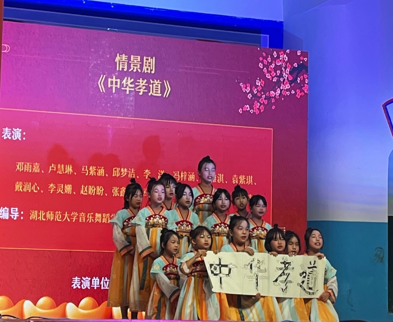 浮屠镇中心小学的孩子们带来情景剧《中华孝道》,他们稚嫩的声音、真挚的情感,诠释孝道这一中华民族的传统美德,让观众在感动中铭记和传承。浮屠镇初级中学带来的合唱表演《灯火中的中国》,唱出家的温暖、祖国的繁荣昌盛。重阳节知识、乡村振兴知识抢答环节把气氛推向高潮。