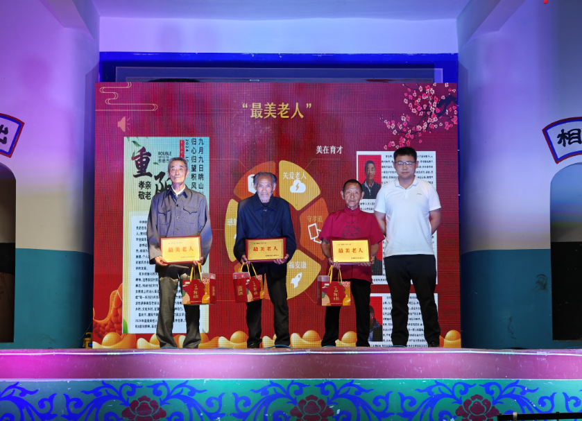 演出前,湖北师范大学还为张畈村捐赠了资金和衣物,浮屠镇为张畈村3位“最美老人”颁发了证书。
