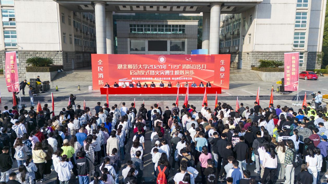 本网讯 为增强广大师生消防安全意识和应急逃生能力,11月10日上午,学校联合黄石港区消防救援局、黄石港公安分局举办2024年“119”消防宣传月启动仪式暨火灾逃生模拟演练活动。学校党政办、宣传部、学工处、团委、保卫处、国资处、基建处、后勤管理中心、湖北湖师教育科技发展有限公司相关负责人以及辅导员、2024级学生干部和寝室长代表参加此次活动。活动由保卫处副处长王浩主持。