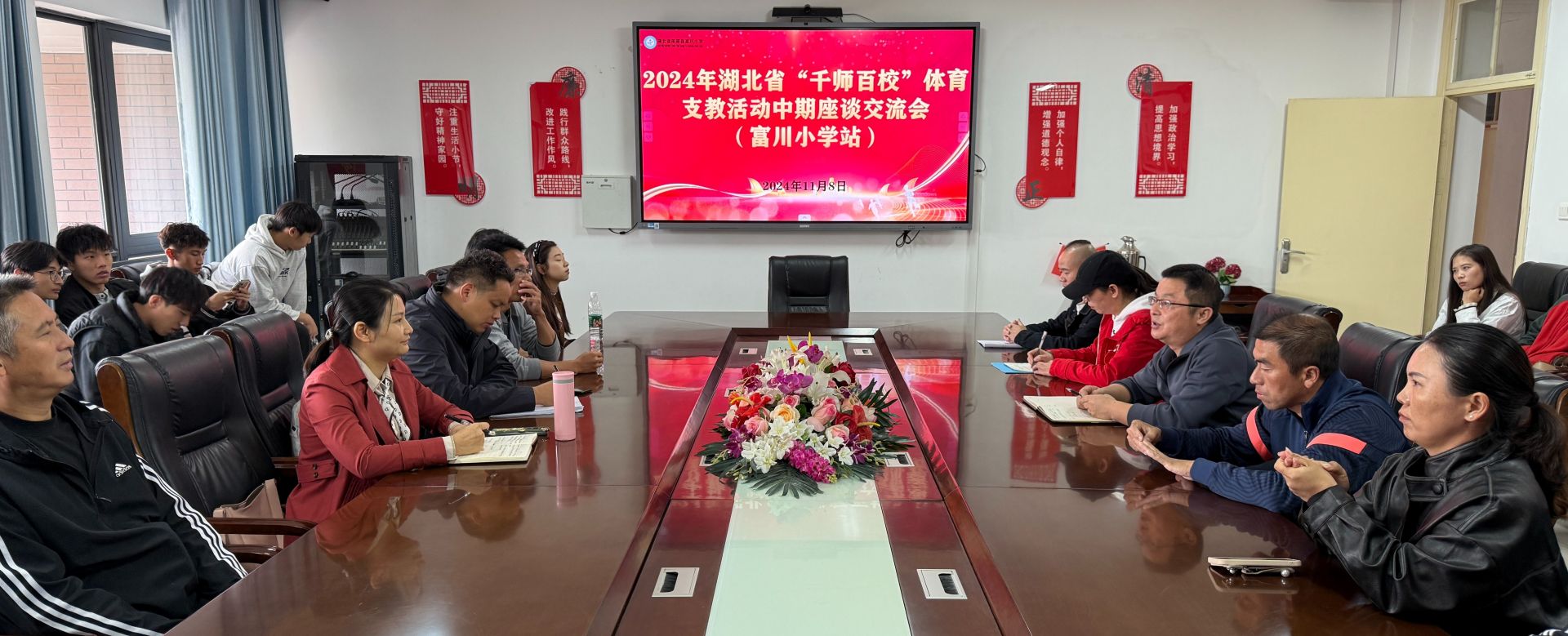 11月8日上午,湖北师范大学体育学院前往阳新县富川小学,开展义务教育体育与健康课程标准解读专题讲座,并召开体育支教活动中期座谈会。