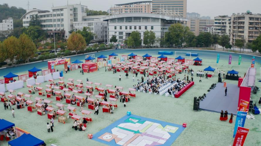 11月15日,湖北师范大学第二届双创嘉年华活动在田径运动场盛大开幕,活动为期三天,旨在激发学生的创新活力和创业梦想。本次活动以“敢闯、会创、赢未来”为主题,通过一系列丰富多彩的活动,为师生提供了一个展示创新创业成果和交流的平台。