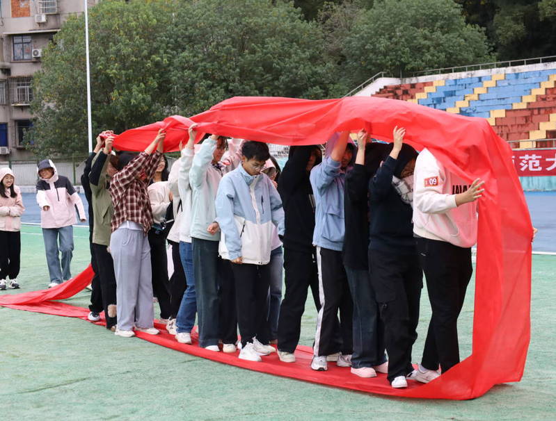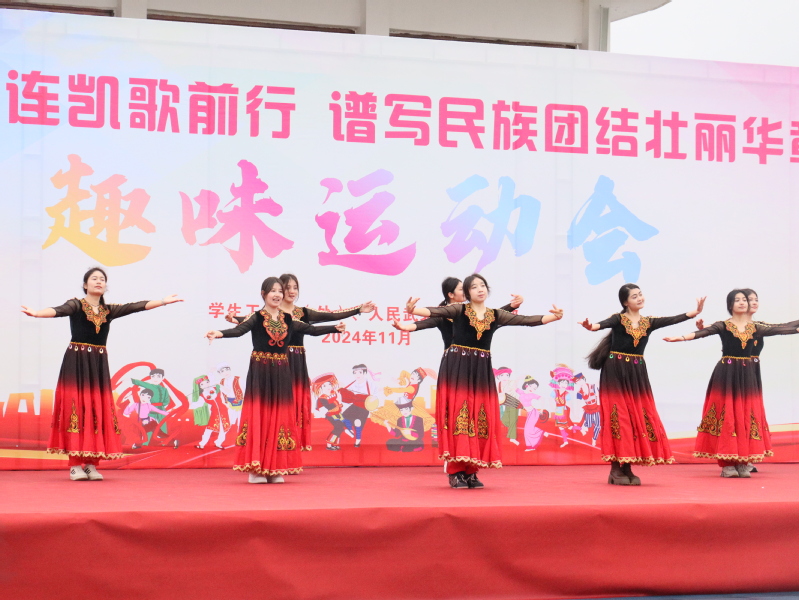 趣味运动会在教练员的精心组织和指导下,师生们随机分为十支队伍,积极参与到“旱地龙舟”、“众星捧月”、“铁甲战车”、“滚铁环”等项目中。各民族同学手牵手、心连心,在运动场上尽情地挥洒汗水、释放活力,展现出新时代大学生阳光健康、积极向上、团结协作的精神风貌。
