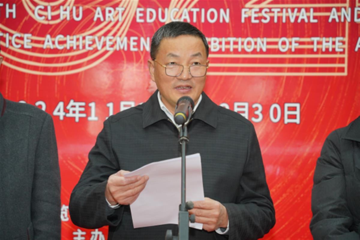 雷儒金对美术学院的美育工作成效和美育基地建设成果给予了充分的肯定,指出“磁湖美育节”为学生们展示自我、学习交流提供了绝佳平台。雷儒金就进一步开展好、落实好学校美育工作提出希望:要明确方向,以咬定青山不放松的决心,坚守美育育人初心;要守正创新,以扶摇直上九万里的信心,展示中华美育精神;要躬行践履,以披星戴月照征程的恒心,开创美育浸润格局。他勉励美术学院全体师生要牢记立德树人根本任务,以大爱之心育莘莘学子,为学校美育事业发展再立新功。