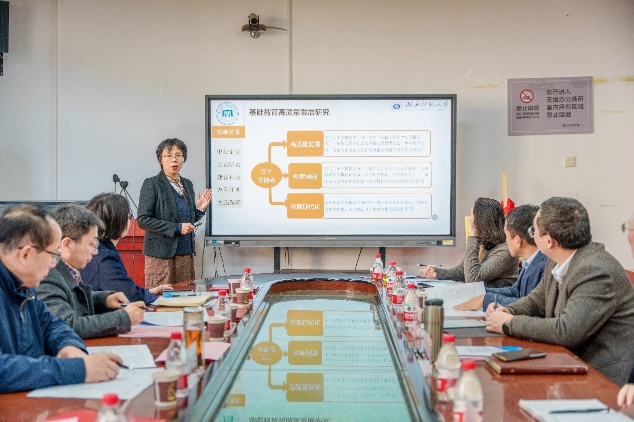 湖北师范大学教育科学学院执行院长、研究中心主任朱浩介绍了基地建设的历程和申报情况。研究中心副主任邹从容从建设背景、中心定位、主要职责、建设目标、主要方向与任务、实施保障六个方面详细汇报了基地建设方案和基地2024年开放基金项目指南。