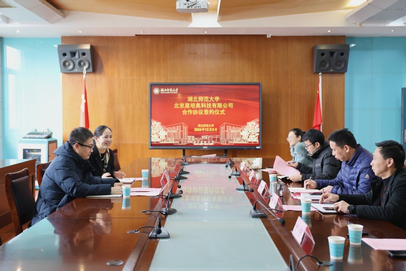 本网讯 12月5日上午,湖北师范大学与北京星培奥科技有限公司在行政大楼505会议室举行了合作协议签约仪式,科发院、招生就业处、校友工作处、计信学院等部门相关负责人出席签约仪式,仪式由湖北师范大学科发院院长刘建民主持。