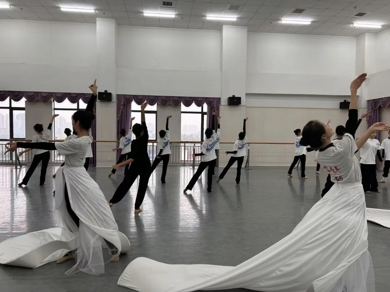 对于学生们来说,现场排演最难克服的就是寒冷。令2023级舞蹈系学生姚姿含印象最为深刻的,是在零下5℃的江滩排演元宵晚会节目《宫商角徵羽》。“我们表演的衣服很薄,晚上江风一吹真的冷得受不了。”姚姿含清楚地记得,每次排演前,同学们都要在衣服里面贴十几个“暖宝宝”,像背着“炸药包”一样,“一晚上下来,光是暖宝宝的包装纸都能装一麻袋。”