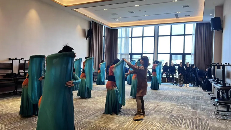 来到武汉后,80名师生住进了中南民族大学附近的酒店。向晶宝介绍,大家先是在中南民大里排练,每天早上8点半到晚上10点;后面又到各个点位进行现场联排,经常通宵,天亮才收工。