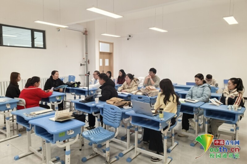 图为实习队成员们依次进行模拟授课并相互评课。杜家宇 供图