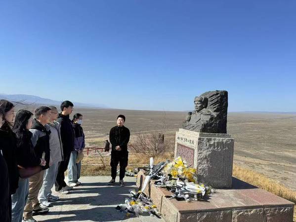 据悉,这支援疆教育实习队由湖北师范大学马克思主义学院、教育科学学院、数学与统计学院、物理与电子科学学院的 10 名在读研究生组成。自今年 2 月底进驻湖北师范大学附属阿拉山口市中学以来,他们秉持 “教育戍边” 理念,积极投身教育教学工作,搭建起民族团结的桥梁。队长杜家宇在纪念碑前感慨道:“触摸着英雄山滚烫的岩石,更深刻体会到教育工作者就是新时代的界碑 —— 既要筑牢知识防线,更要传承精神火种。”