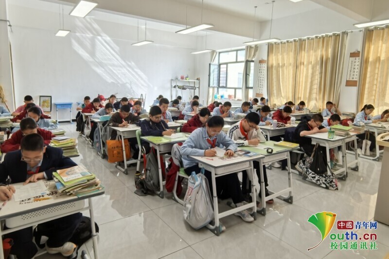 图为实习队员负责七年级二班数学测试的监考工作。杜家宇 供图