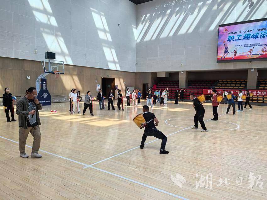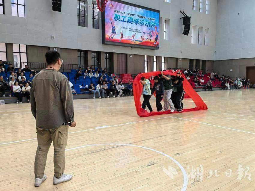 湖北日报客户端讯 4月23日,为丰富干部职工文体生活,增强团队凝聚力,展现阿拉山口市“口岸城市”特色,弘扬边疆奋斗精神,阿拉山口市总工会与市文化体育广播电视和旅游局联合主办的“边疆风采·活力口岸”职工趣味运动会在市体育馆一楼篮球馆隆重举行。湖北师范大学“研究生教育援疆实习队”赴疆开展阶段性工作之际,在市教育局的牵头下,联合当地其他教师成员组成“教育系统代表队”共同参加此次活动,与阿拉山口市各系统代表队同场竞技,以青春活力展现教育援疆风采,以团结协作传递民族团结精神。