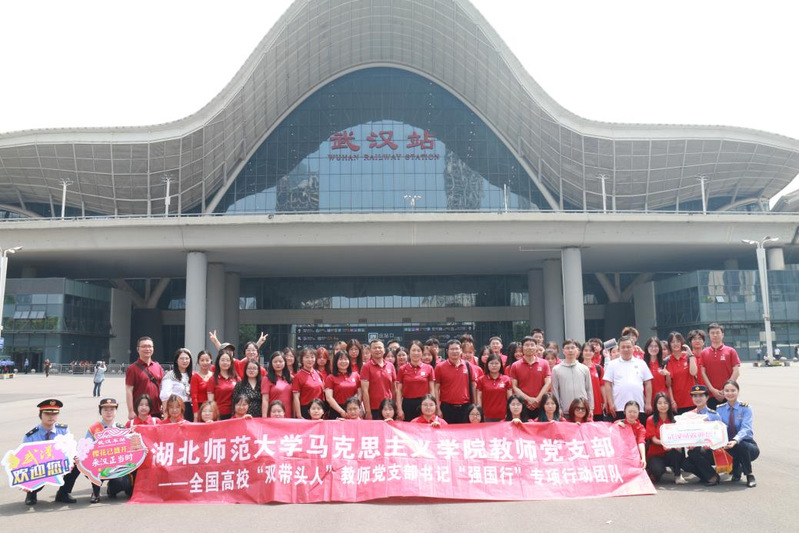 为深入学习贯彻习近平新时代中国特色社会主义思想和习近平总书记关于深化思政课改革创新的重要指示精神,丰富思政课教学形式,4月25日,湖北师范大学马克思主义学院以“行走的思政课——复兴号上触摸中国速度”为主题,开启了一场理论与实践深度融合的红色研学之旅。活动由学院党委书记李洁带队,全国高校“双带头人”教师党支部书记“强国行”专项行动团队党员和入党积极分子,以及24级“优师计划”班全体学生参与。
