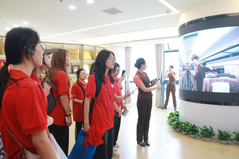 在武汉高速铁路职业技能训练段,师生们沉浸式体验高铁驾驶仿真系统,学习轨道供电、信号调度等专业知识,并通过沙盘模拟了解高铁“全产业链”协同运作模式,深刻理解“交通强国”战略的系统性工程。训练段负责人介绍说到“高铁的‘中国标准’背后,是无数技术人员精益求精的工匠精神”。