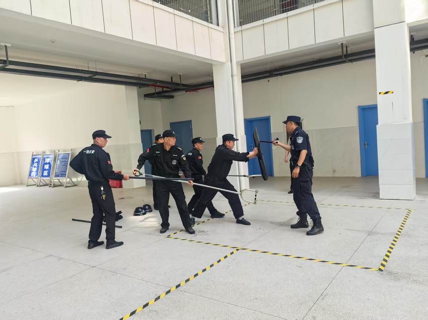 演练前,社区民警从“恐怖主义的定义与特征”“校园反恐的重要性”“师生自救互救要点”三方面展开讲解,重点演示了“防暴器械使用方法”——如何正确握持防暴盾牌、钢叉等配合抓捕技巧,并邀请教职工上台实操练习。