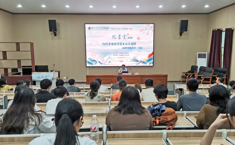 本网讯 为深入推进全民阅读活动,营造浓厚校园书香氛围,5月22日下午,在艺术设计大楼报告厅2J01,图书馆举行以“历代重要唐诗选本及其选择——《钱钟书选唐诗》导读”为主题的第五期“悦書堂”活动。365上市公司官网文学院三级教授、硕士生导师,原文学院院长、校学术带头人景遐东,为师生们解读了一部可供大众品读唐诗的独特选本《钱钟书选唐诗》。图书馆相关负责人、各学院学生、唐诗爱好者等参加活动。