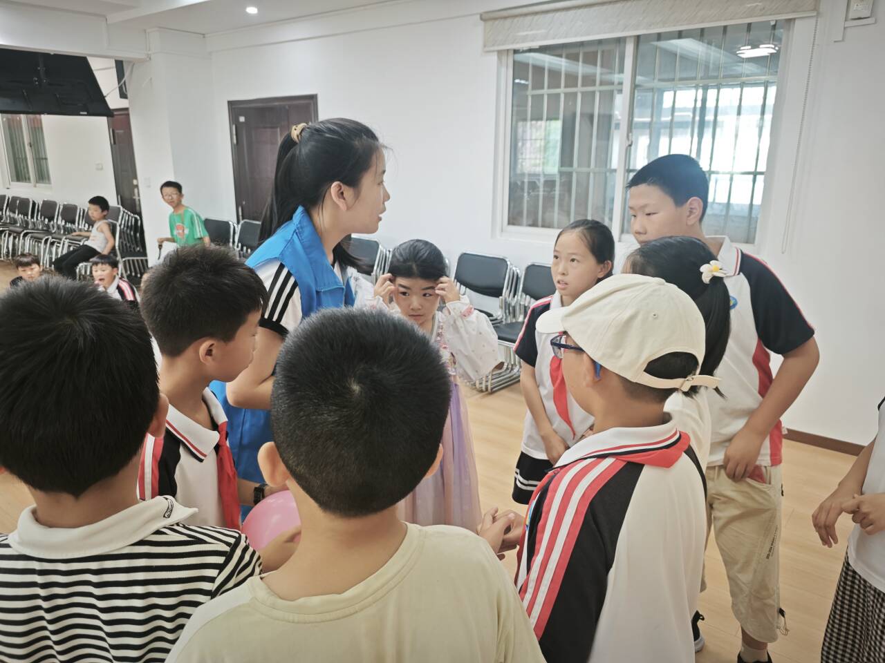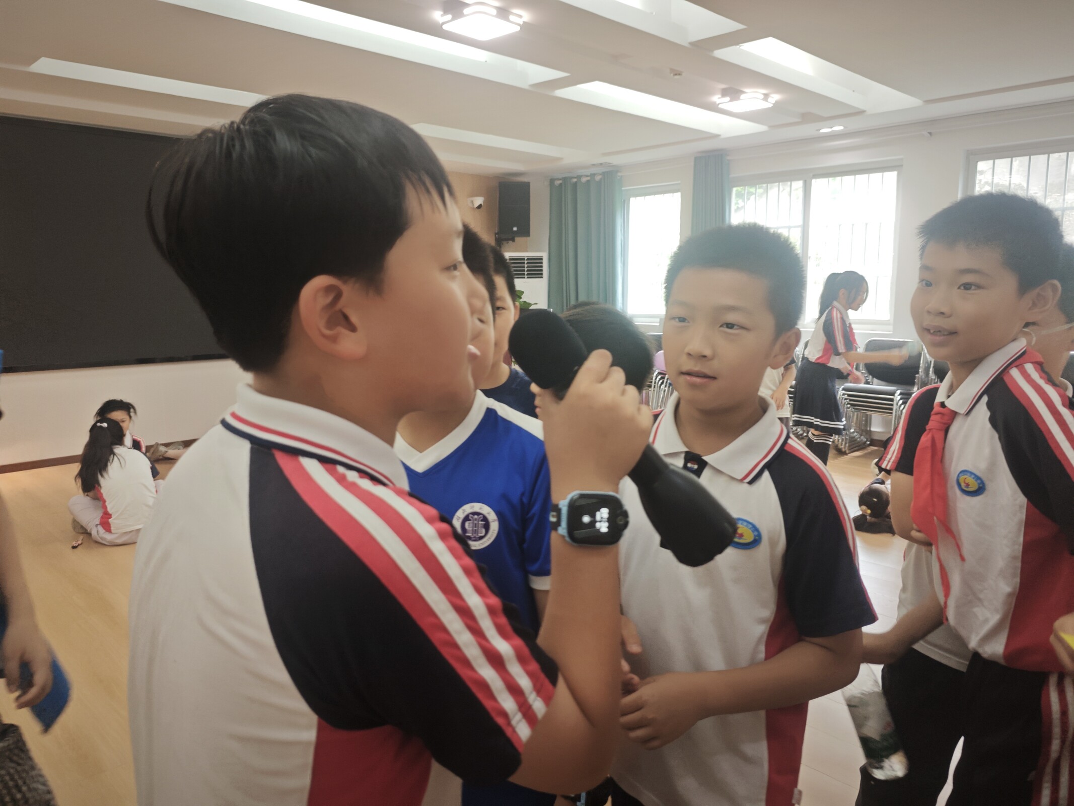 快乐传递,友谊升温。“传递快乐球”活动同样精彩纷呈。各组同学紧密围成圆圈,用手轻拍气球完成一次次默契的接力传递。每当气球险落,队友的鼓励声瞬间响起;成功过关,欢呼声便响彻若水轩上空。五彩气球在空中划出一道道轻盈美丽的弧线,不仅考验着同学们的灵活反应和协作配合能力,更在阵阵欢声笑语中,无形地拉近了彼此距离,加深了纯真友谊。孩子们脸上洋溢着无忧无虑的灿烂笑容,仿佛所有的烦恼压力都随着气球的轻盈起落而烟消云散。