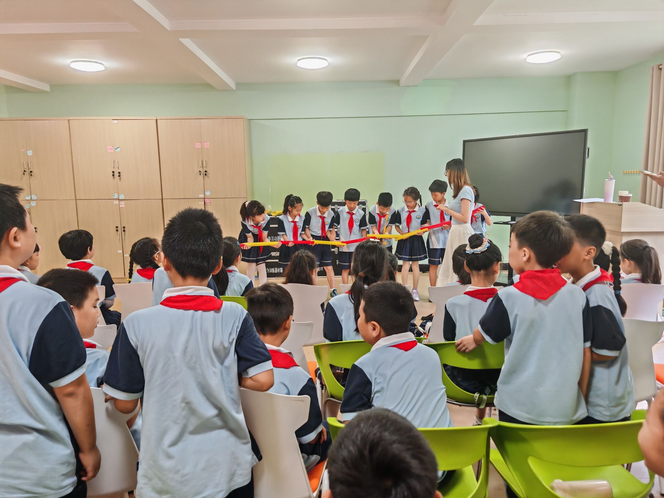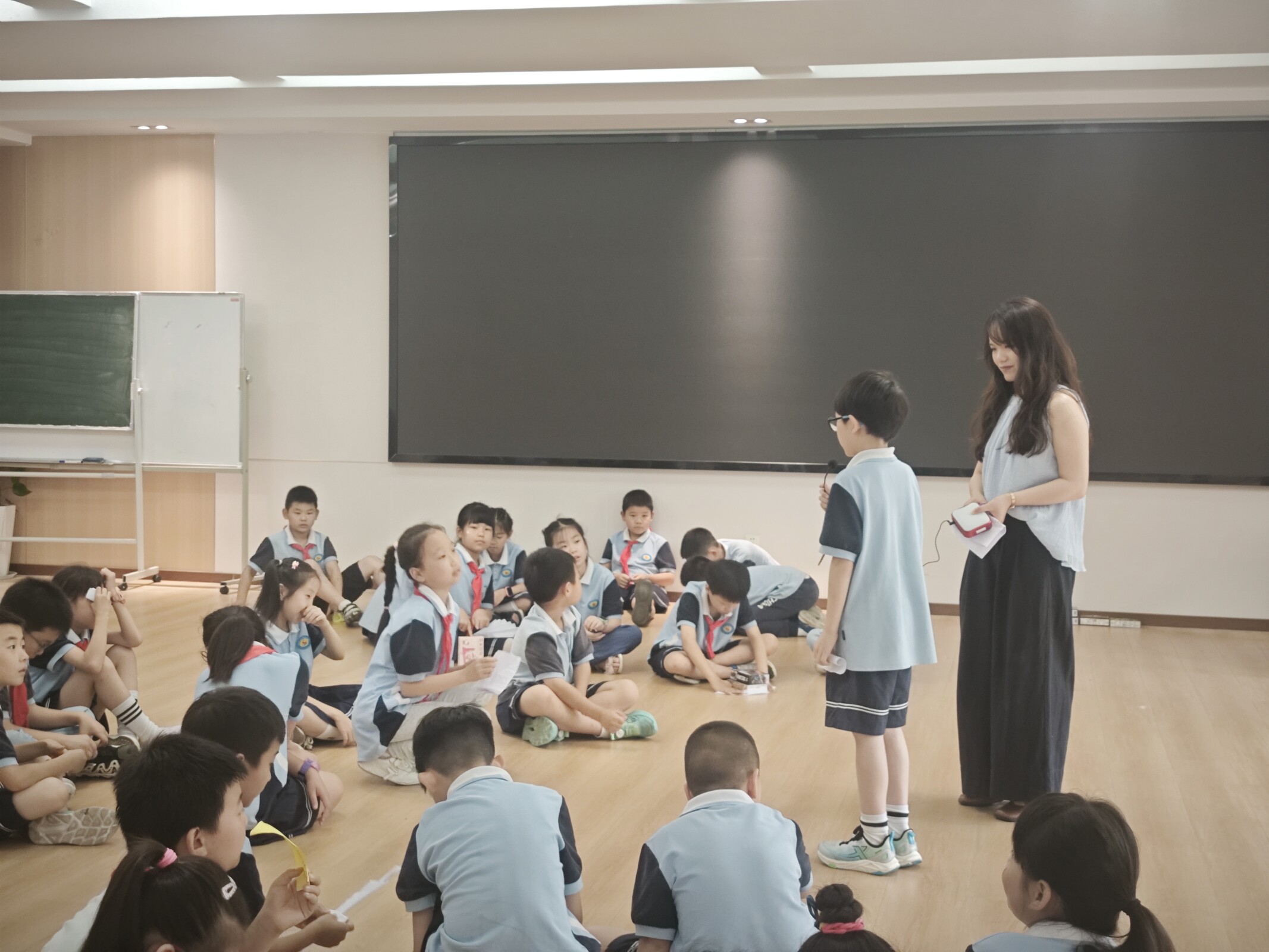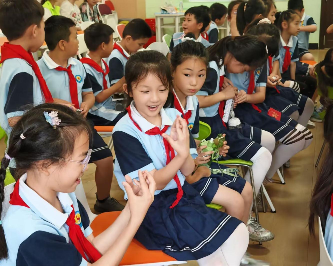 奇思妙想,编织心灵故事。活动高潮在“奇妙故事会”环节澎湃而至。学生们分组围坐成小圈,拿到一个关键词后便热烈讨论起来。大家你一言我一语,天马行空地展开想象,围绕关键词共同编织出一个个充满童心童趣、跌宕起伏的精彩故事。老师们认真聆听,巧妙设问,引导同学们在畅所欲言的叙述和专注用心的倾听中,感受表达与倾听的双向魅力,体会思想碰撞的乐趣。