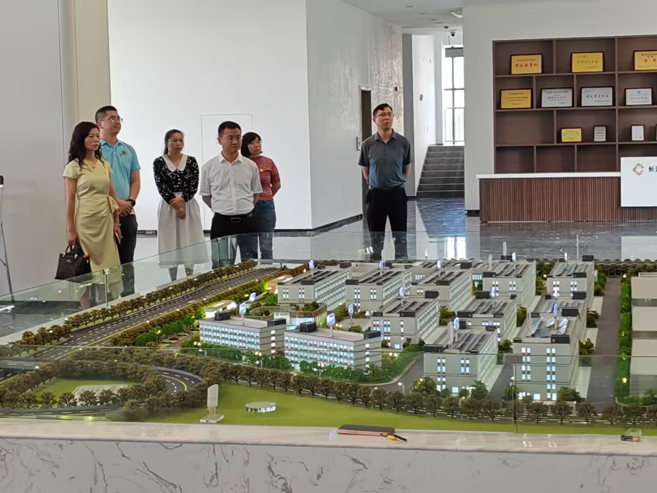 来到综合大楼,首先映入眼帘的是整个工业园区的概览场景。湖北长投金属表面处理有限公司执行董事谢柳为党员们介绍了工业园区的基本状况,该园区现为省级重点项目,占地超22万平方米,预计年产值达10亿元。