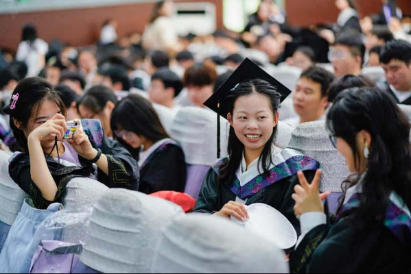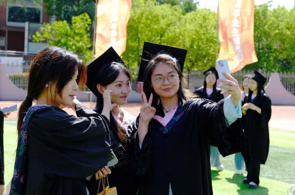 这一方承载青春的校门,见证过她们初遇时的懵懂,也将铭记此刻奔赴新程的洒脱。每一个灿烂笑容,都是四年珍贵情谊的绽放,“让我们再来和校门合个影吧!”往后山高水远,这份校园里的美好,会在回忆里熠熠生辉,成为漫长岁月里最温暖的底色 。