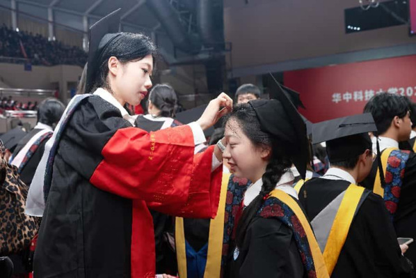 5月31日,武汉工程大学毕业季,身着学士服的同学们相聚校园空地,以蓝天为幕,记录青春同行的珍贵时刻。画面里是同班级的好友,大学时光里,他们一起为学业奋斗、在校园漫步谈天,毕业之际,用背影与比耶的姿势,定格这份纯粹的同窗情谊。