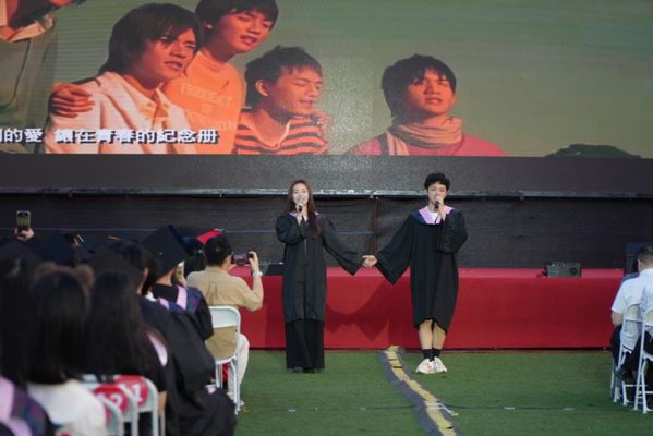 毕业演出的绿茵舞台上,武汉传媒学院2025届毕业生代表身着学士服,牵手合唱《青春纪念册》,大屏里的旧时光画面与现场歌声交织,把四年同窗的笑泪、对校园的眷恋,都唱成这一曲,让青春在旋律里永远鲜活。