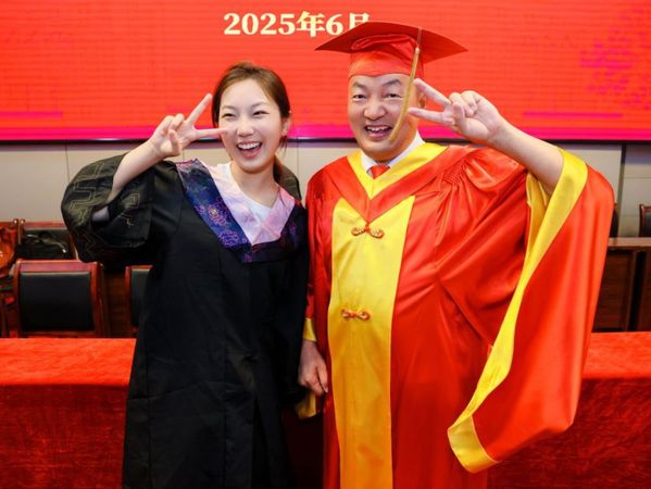 天台之上,他们排成一排,高高抛起学士帽,身影在天光下凝成剪影。有人蹦跳、有人伸展手臂,每一个姿态都满是青春的肆意。帽儿飞旋的瞬间,毕业的喜悦与对未来的憧憬一同迸发,我按下快门,把这热烈又珍贵的画面留存,见证他们与校园时光郑重的告别。