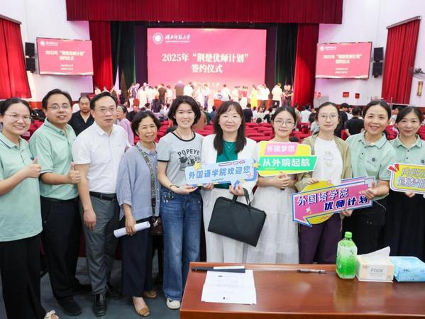 7月9日上午,湖北师范大学举办2025年“荆楚优师计划”师范生签约仪式,本次招生的专业分别为思想政治教育、英语、化学、生物科学,共165名拟录取考生与省内相关地市州教育局完成现场签约。