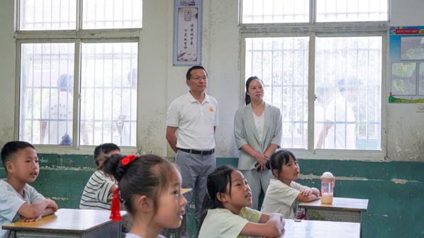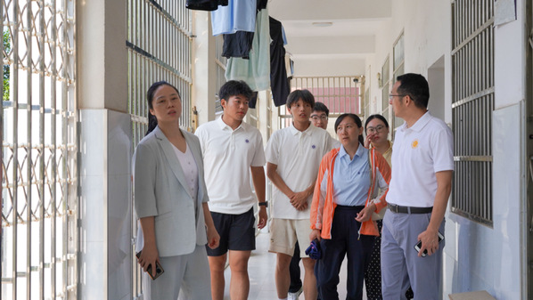 刘晓光一行首先来到学生寝室,详细了解实践队员的住宿条件和生活需求,叮嘱大家注意防暑降温,确保实践活动安全有序开展。。随后,领导们走进课堂,观摩了“青力实践队”的教学活动。音乐课上旋律明快,武术课上一招一式尽显专业风采,手工课和团操课师生互动热烈,充分展现了实践团队的教学成果。