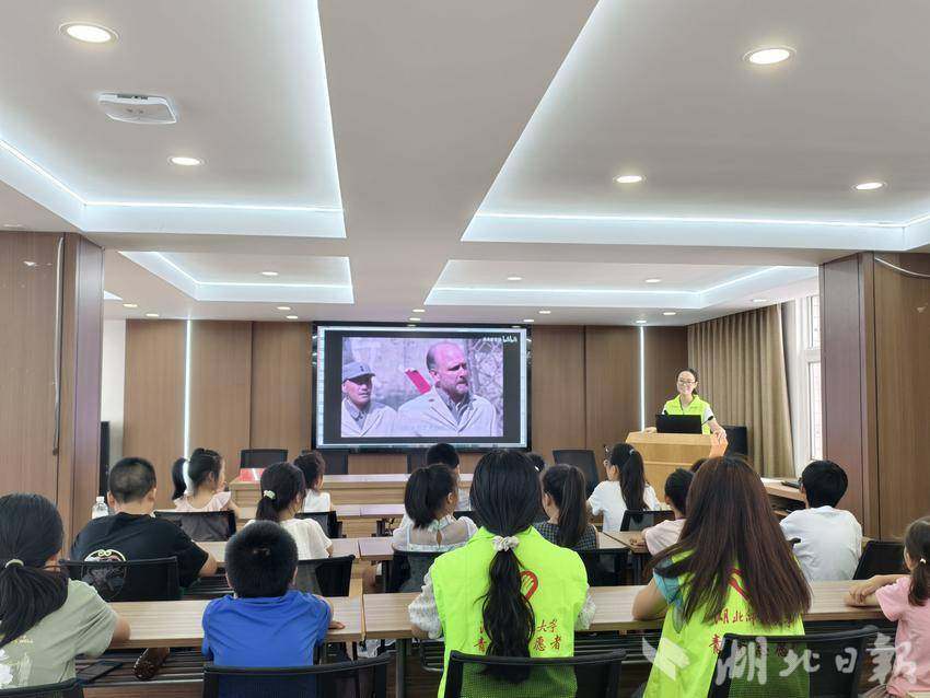 湖北日报客户端讯(通讯员朱鑫宇) 7月10日下午,湖北师范大学马克思主义学院鸿骐宣讲团的志愿者们走进黄石港区师院社区爱心托管班,一场以“远渡重洋传医术,舍生忘死铸精神”为主题的宣讲活动在此上演。志愿者姚依伊以国际主义战士白求恩的事迹为引,引领孩子们在红色故事中感悟精神力量,汲取向上向善的成长养分。