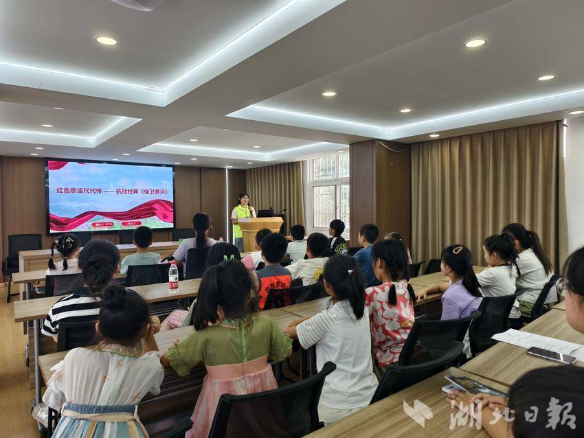 湖北日报客户端讯(通讯员陈正微) 7月11日下午,湖北师范大学马克思主义学院鸿骐志愿服务宣讲团走进师院社区,主讲人曹梦琪为社区孩子们带来一场“《保卫黄河》——抗战经典赏析”特色课程,重温红色旋律,感悟民族精神。