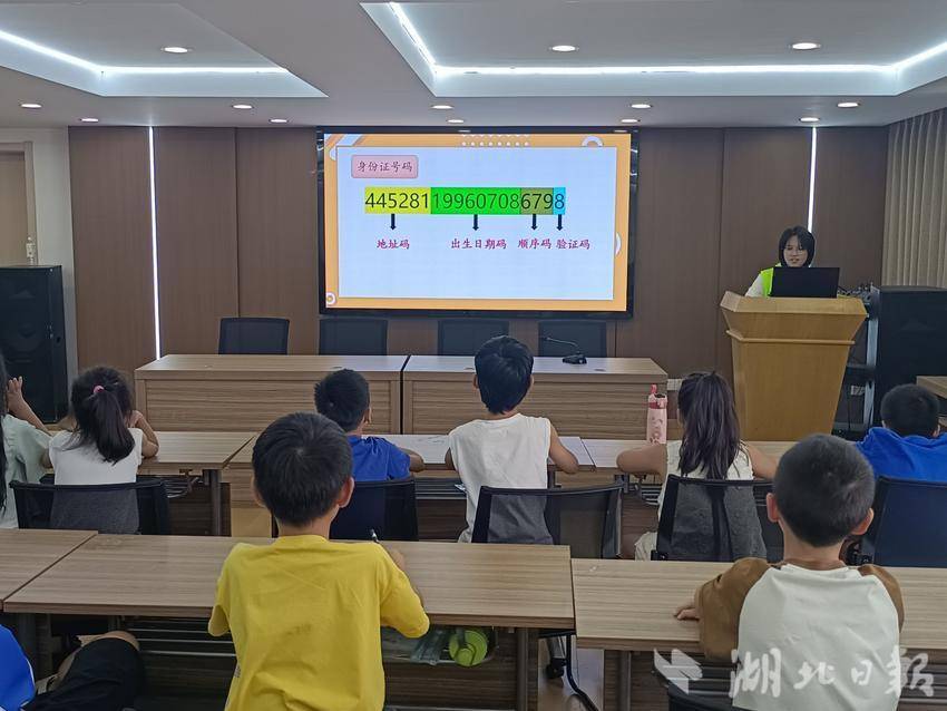 在讲解身份证号码时,她以“445281********6798”为例,将其比作一个“信息包”。前6位“445281”是地址码,如同告诉我们这个人来自广东某地区的“家庭住址”;接下来的8位“19960708”是出生日期码,清晰记录着1996年7月8日这个出生日子;再往后的3位“679”是顺序码,其中最后一位奇数“9”表明持证人是男性;最后1位“8”是验证码,像一位“检查员”,确保号码的正确性。老师还解释,选择这些信息编码,是因为它们具有固定、重要且唯一的特点,能让每个人都有专属的身份标识。这时,一位小朋友举手站起来,眼睛亮晶晶地说:“老师,那我的身份证号里是不是也藏着我的生日呀?我下次要问问爸爸妈妈!”