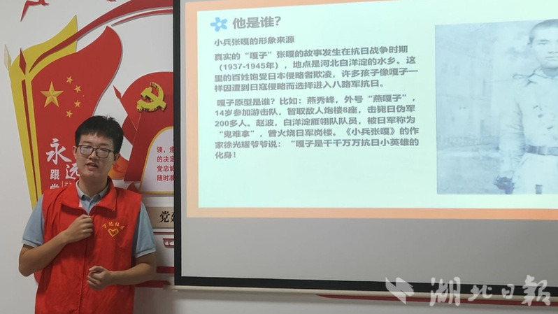 万达社区宣讲员邓雨凡同学,带孩子们拨开白洋淀的芦苇荡,探寻怀揣土枪、与侵略者斗智斗勇的少年身影。他讲述了嘎子原型燕秀峰、赵波的英勇故事,解读“嘎”字不服输的方言内涵,并通过智俘伪军、缴获手枪等事迹,展现小英雄的爱国、机智与坚韧,号召大家争做新时代“小嘎子”。