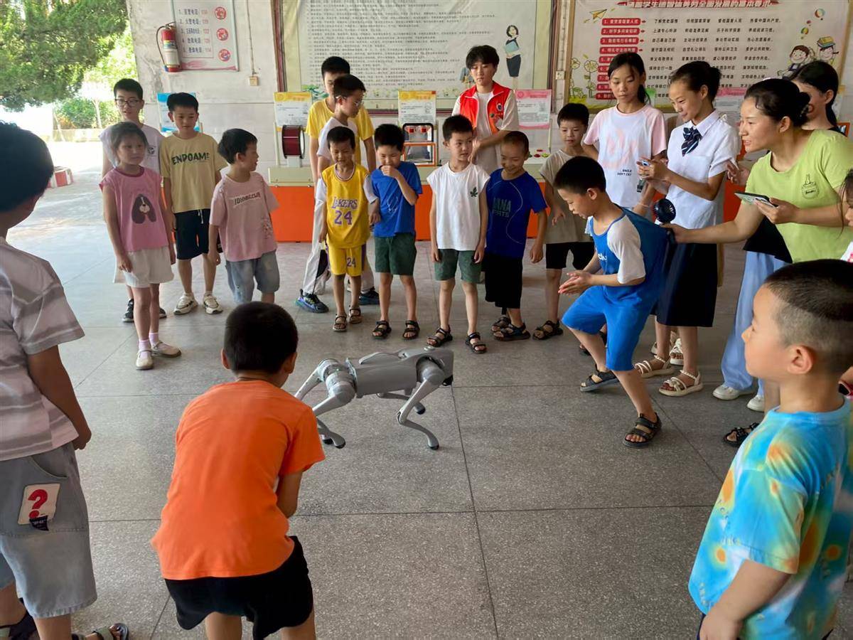 在排市初级中学,队员黄小采以“生活中的核辐射”为主题,结合CT诊断、食品保鲜等生活实例,引导学生理解核技术的日常应用,激发科学兴趣;在梁公铺小学,带队教师罗兰创设“核技术生活地图”,引导学生在“我想发明的核技术”专栏中展开天马行空的科学想象;在华道小学,实践队联合科技馆布展“科技大篷车”30余件互动展品,仿生机器狗、尖端放电装置、活字印刷等项目吸引数百名学生沉浸式体验科学魅力。梁公铺完全小学校长梁德米全程参与课堂教学后动情表示:“你们带来了科技与关爱,也播下了希望的种子。”在浮屠镇华道小学,校长李名炽也高度评价本次联动实践:“科技馆的专业性与大学生的亲和力相得益彰,为乡村孩子带来了前所未有的科学体验。”
