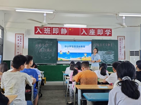 为了让安全知识更易记,实践队还编创了防溺水口诀:“夏天到,水清凉,偷偷下水易遭殃;无成人,不独行,陌生水域不去闯;遇溺水,快呼救,智慧救援记心上。” 朗朗上口的口诀在学生中迅速传开。排市初级中学的柯老师感慨道:“实践队的防溺水教育形式新颖、内容实用,孩子们不仅听得认真,还能主动记住要点,比我们平时反复强调的效果好得多。”