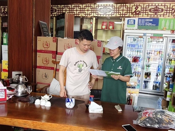 在广东的队员彭霜向当地商户发放《推普宣传手册》,并现场示范教学,强调使用标准普通话对提升服务品质、吸引外地游客、拓展线上销路的重要性,获得店主积极响应。