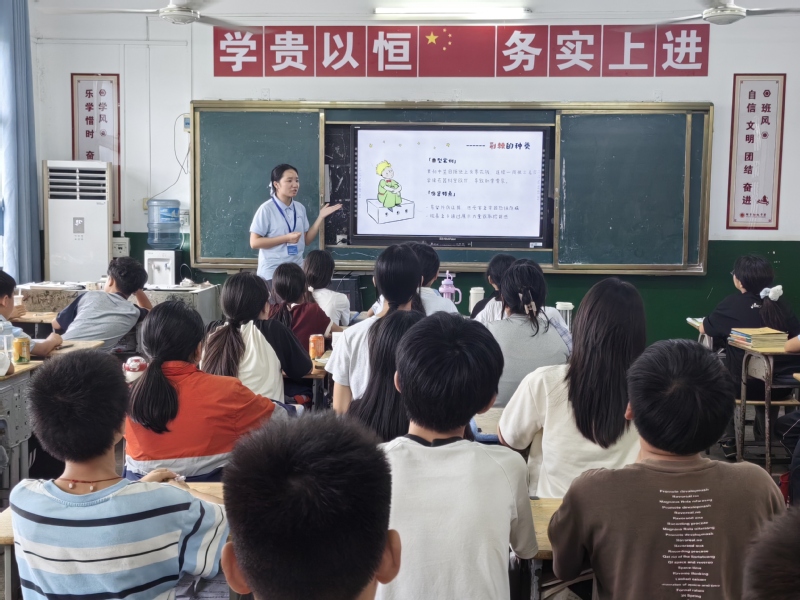 支教老师覃思湘讲授题为“生为玫瑰无惧荆棘——反对校园霸凌”的心理健康课