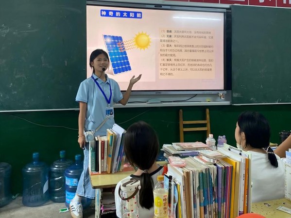 实践队成员屈露在讲解“神奇的太阳能” 庞晨曦 供图