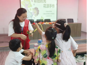 志愿者朱芷珊在扭花手作课堂中与孩子们互动 程锦文 供图