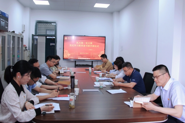 接下来,支部开展党纪学习教育读书班开班仪式,陈文斌同志领学中央党的建设工作领导小组会议精神、中共中央办公厅《关于在全党开展党纪学习教育的通知》,祝治国同志学习传达《中共湖北师范大学委员会关于开展党纪学习教育的实施方案》。